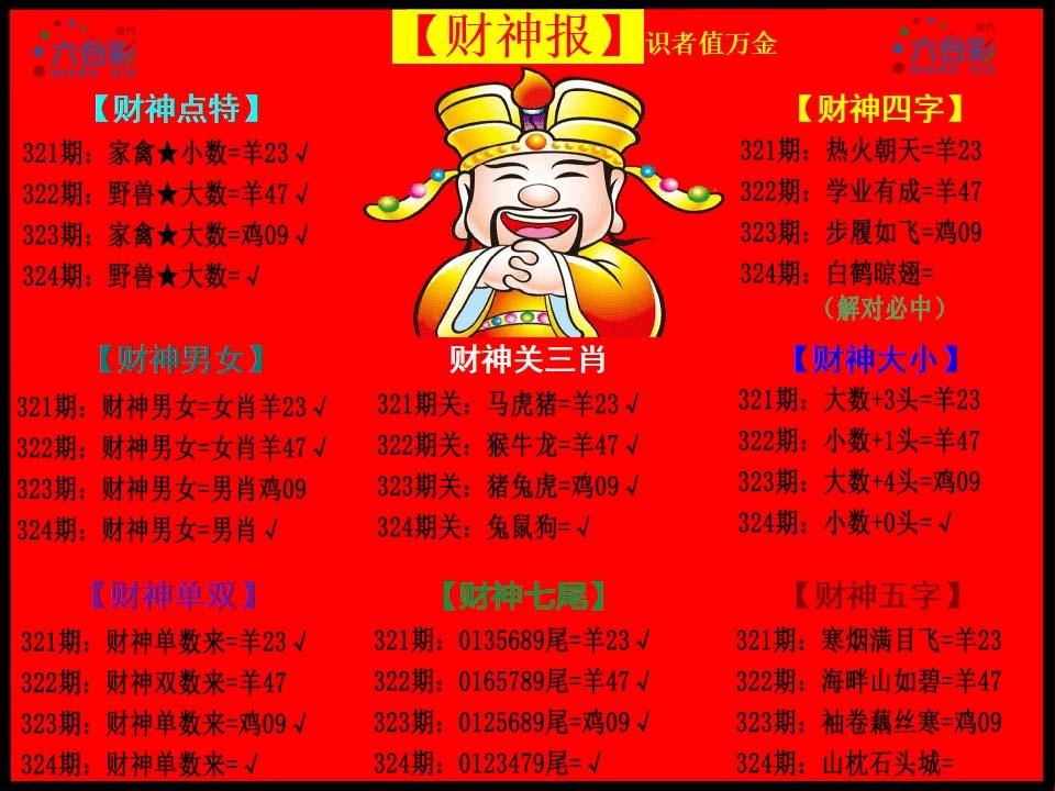 | 321期 | 今期买牛猴鸡输尽光 | 开:羊23 |